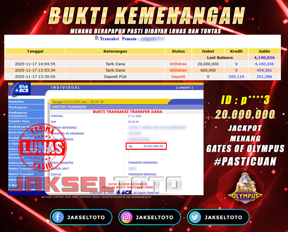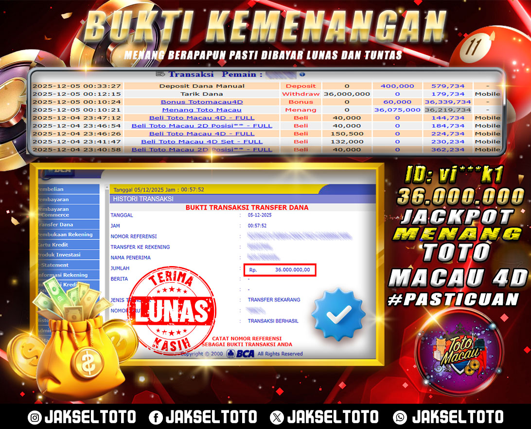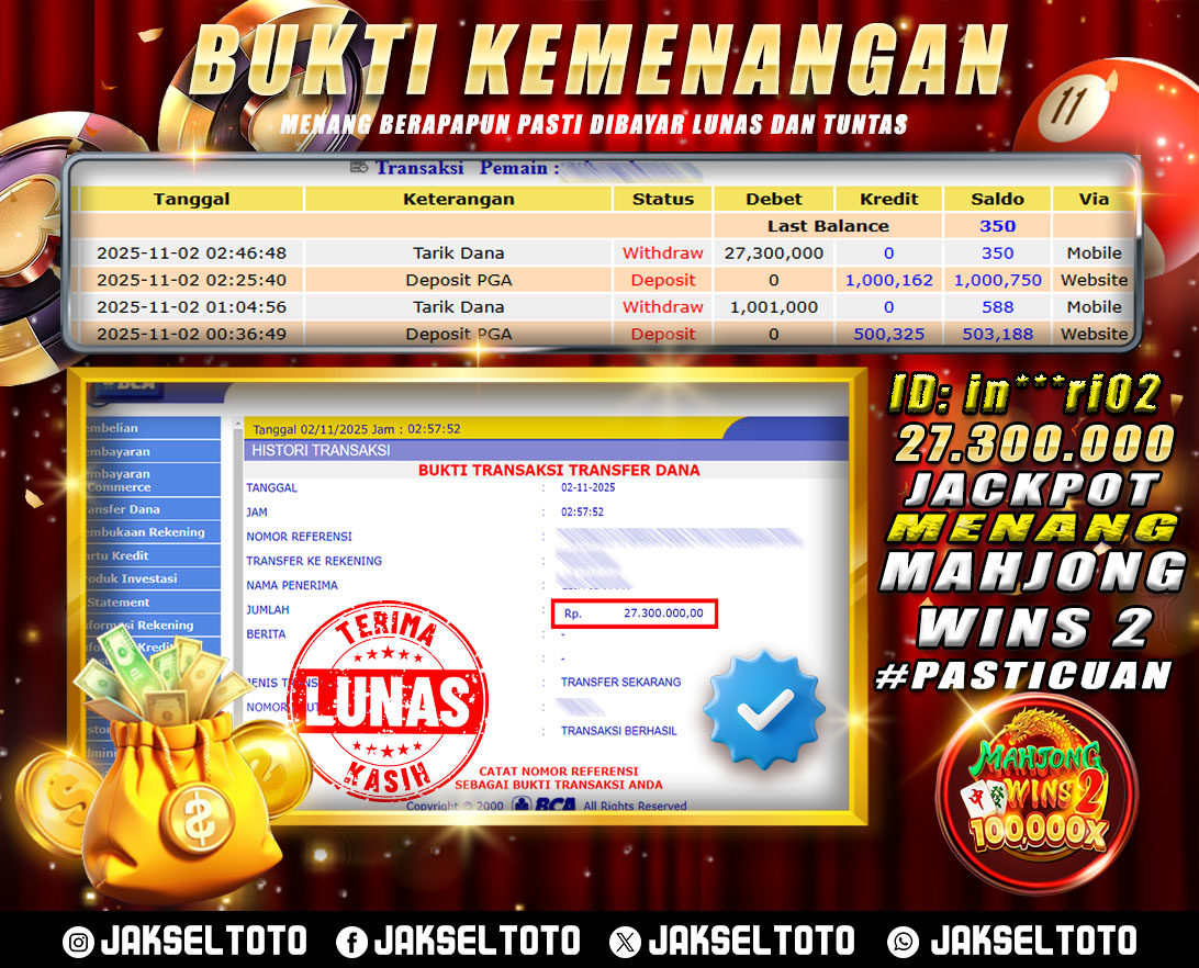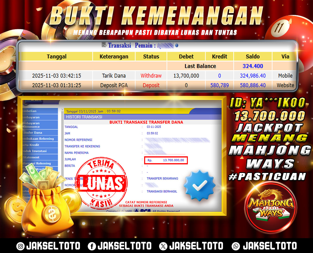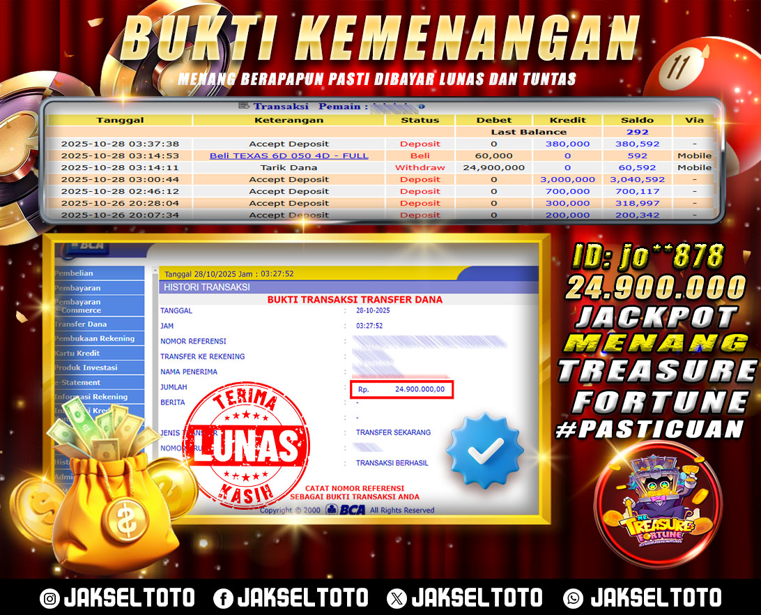 Bermain di BO JAKSELTOTO untuk kemenangan berapapun PASTI BAYAR!!! tidak perlu di ragukan lagi bermain di BO TERPERCAYA dan AMANAH, bukti JP TOGEL, LIVE GAME, SLOT terbesar dan real tidak ada potongan sedikitpun untuk kemenangan member, Situs BO terbesar di Indonesia dengan rate profit kemenangan yang fantastis!!!!!