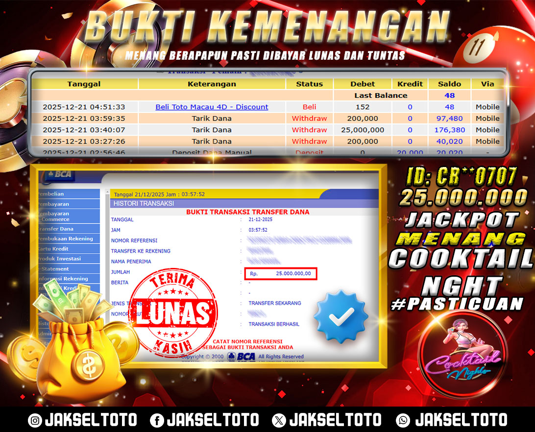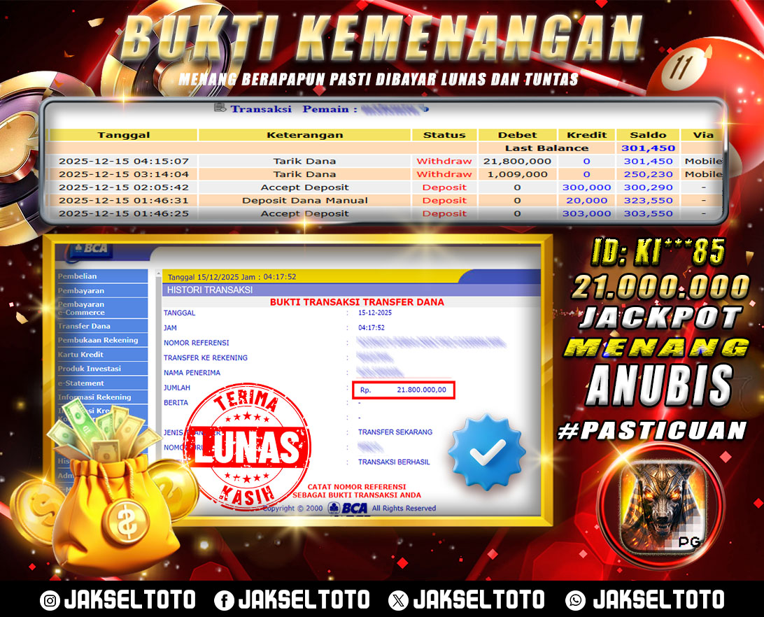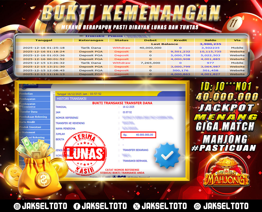 Bermain di BO JAKSELTOTO untuk kemenangan berapapun PASTI BAYAR!!! tidak perlu di ragukan lagi bermain di BO TERPERCAYA dan AMANAH, bukti JP TOGEL, LIVE GAME, SLOT terbesar dan real tidak ada potongan sedikitpun untuk kemenangan member, Situs BO terbesar di Indonesia dengan rate profit kemenangan yang fantastis!!!!!