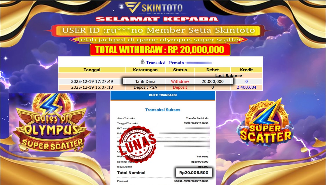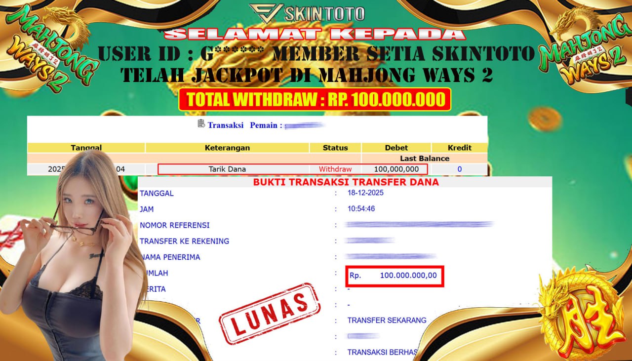 Berikut di bawah ini adalah tanda bukti jackpot atau bukti kemenangan member skintoto yang telah di lunasi.